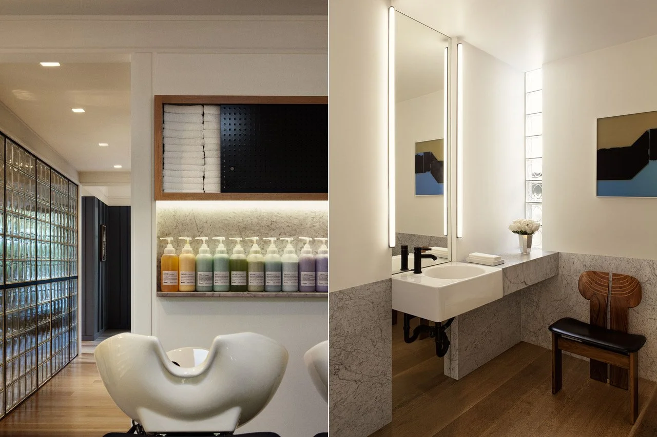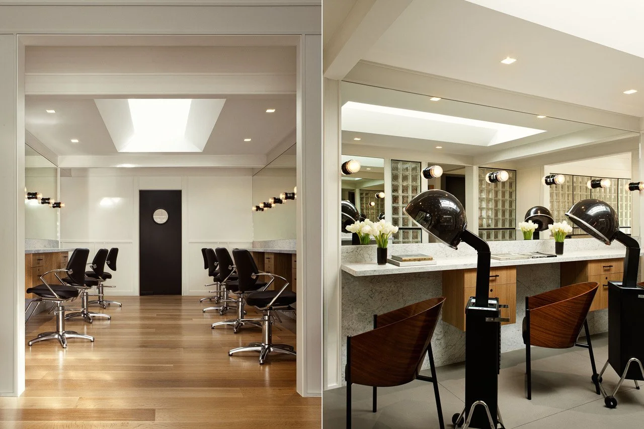 Dating back to the 1920s, the challenge here was how to transform this dark, undistinguished property into a bright, flagship hair salon that could give 14 hair stylists a functional space to work, while also providing a comfortable, spa-like environment to ensure clients can enjoy a relaxing experience while visiting. Working alongside the owners of the salon, we decided to prioritize creating a space that set their brand apart from other competitors, giving room for future growth while also keeping the original character of this property intact.